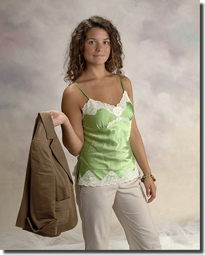 ![]() My Comments... "Amanda is such a lovely young lady, and made my job much simpler. As we moved into the studio, my focus turned more to selection of a background that complemented her outfits, as well as providing lighting that accentuated her beautiful facial features. I continued to encourage her to do a variety of fun things like a model. This is one of the results, and one of her selections."