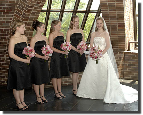 ![]() My Comments... "I try to mix in a combination of formal and informal portraits of the bridal party. This gives the bride a variety of options to choose from. In this case, the church had a nice area at the top of the stairs on the way from the bride's dressing room to the church santuary. We simply stopped on the way to the sanctuary and created this image."