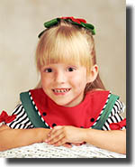 "Bobby calls this the watermelon portrait since her dress looks like a watermelon. This is not typically the type of clothes that we recommend to our clients - too many patterns that could potentially take away from the face. However it worked here and she looks very cute."